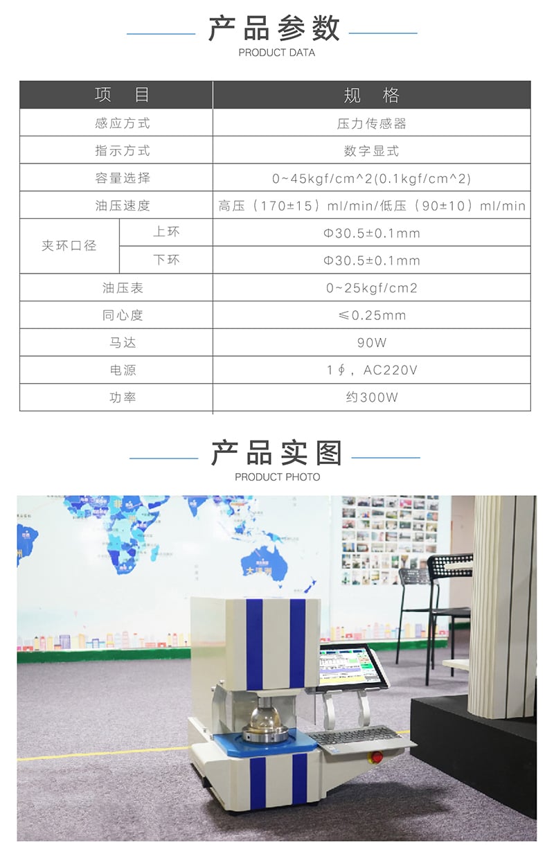 二、破裂試驗機產品介紹:紙張破裂試驗機是國際通用型繆綸(Mullen)式儀器是紙和紙板強度性能檢測的基本儀器,主要用于測定各種紙板及單層和多層瓦楞紙板,也可用于絲綢、棉布等非紙質材料的耐破強度的測試。本儀器操作簡單、性能可靠、技術先進,是科研單位、造紙廠家、包裝行業、質檢部門不可缺少的理想設備。