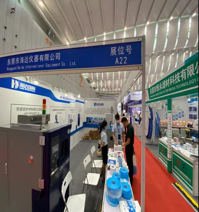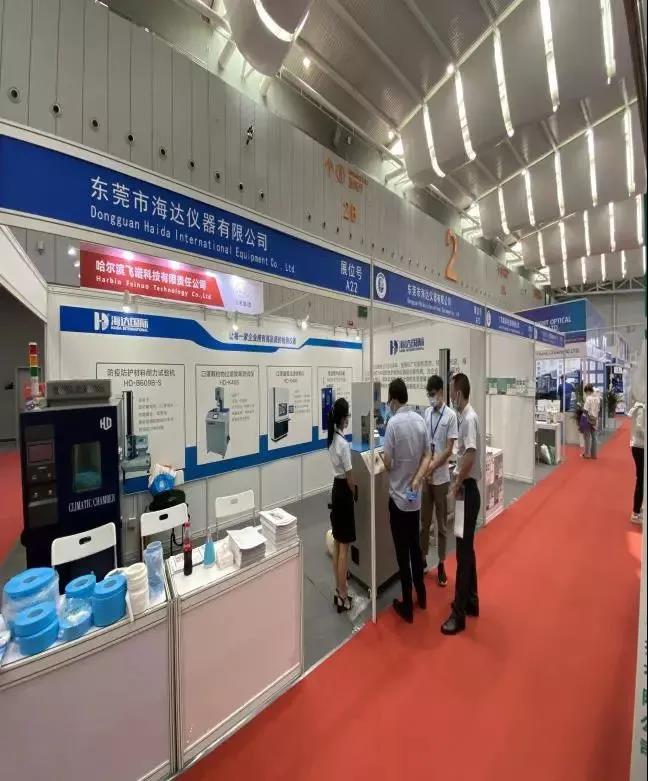 廣東海達儀器有限公司洞悉目前國內和國外檢測設備行業市場現狀,針對檢測設備進行研發。在本次展會上,海達展出了HD-K406口罩顆粒物過濾試驗機、HD-B609B-S萬能拉力試驗機、恒溫恒濕箱,得到了參展者的強烈興趣和廣泛關注。